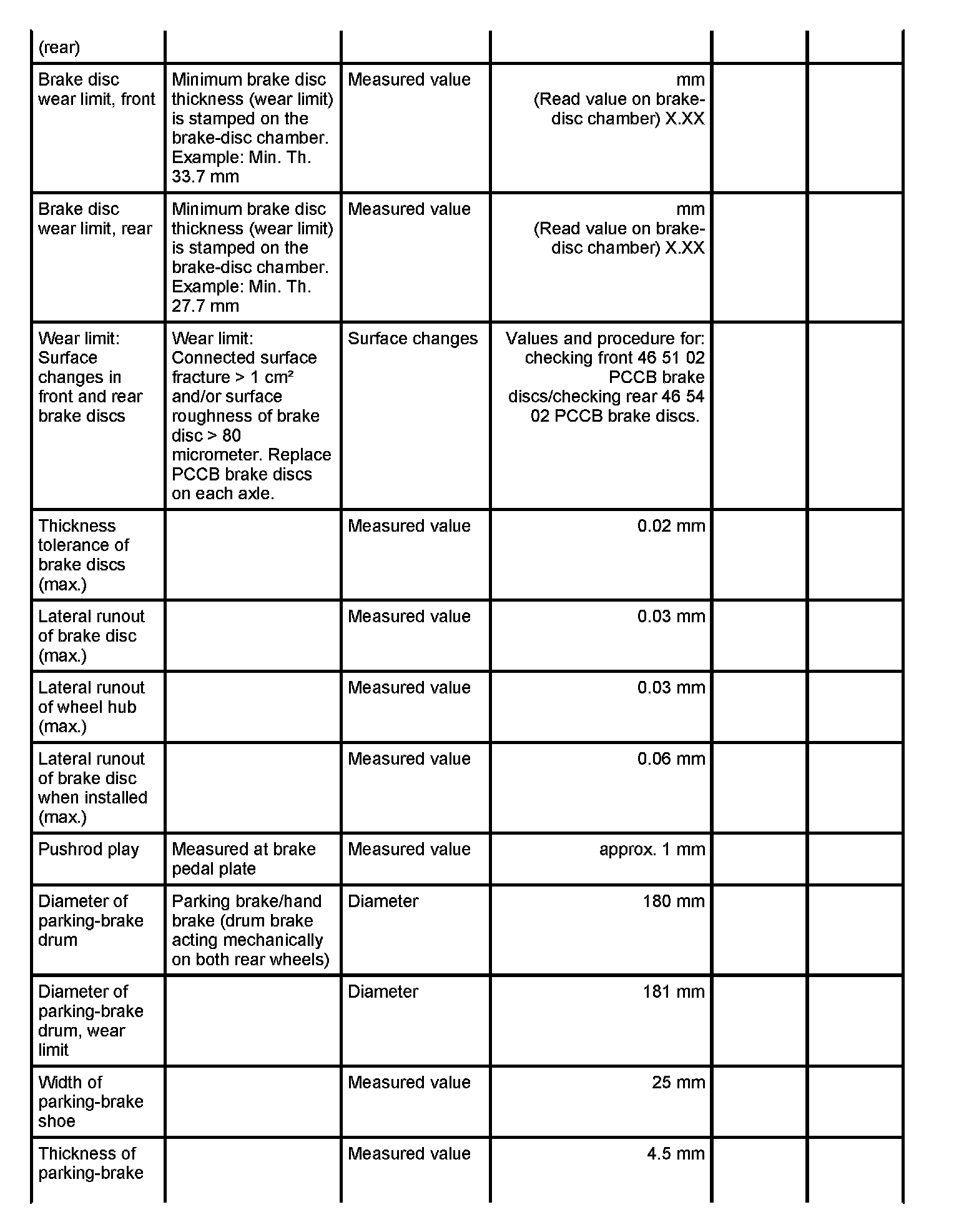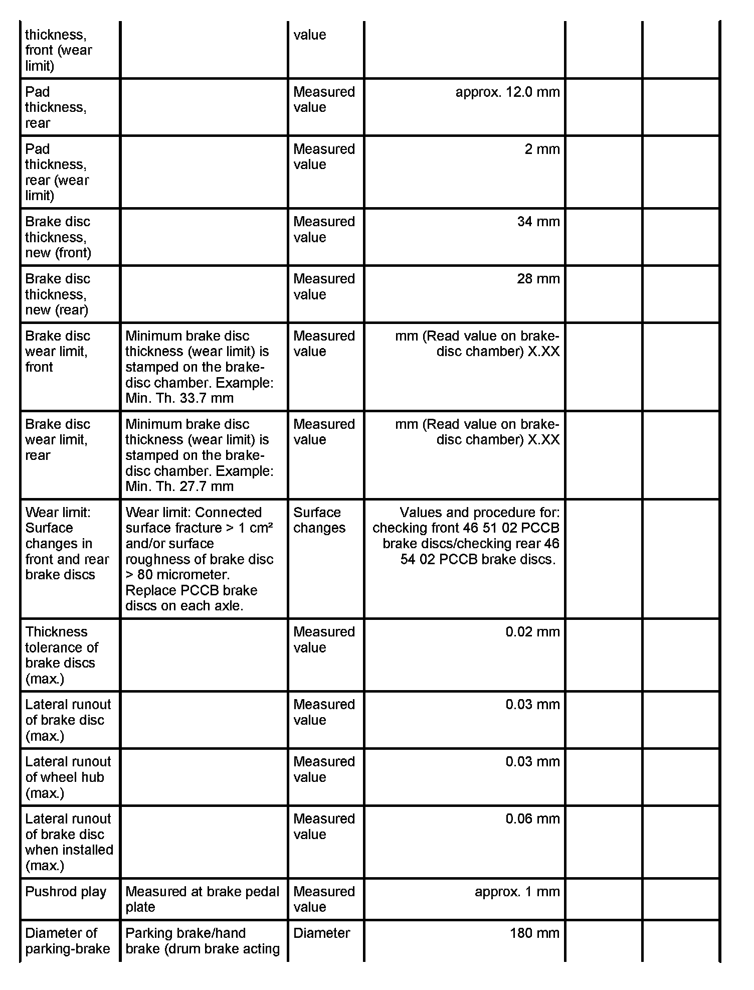 WM 4600TW Technical data/Brake wear limitTechnical values