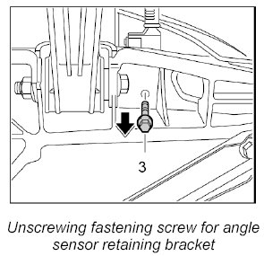 3. Unscrew fastening screw -3- for angle sensor retaining bracket on side member from below.