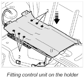 3. Position the control unit holder into the four fastening bolts on the body and screw on the four fastening
