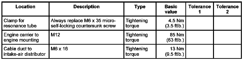 - Tightening torque: 13 Nm (9.5 ftlb.)