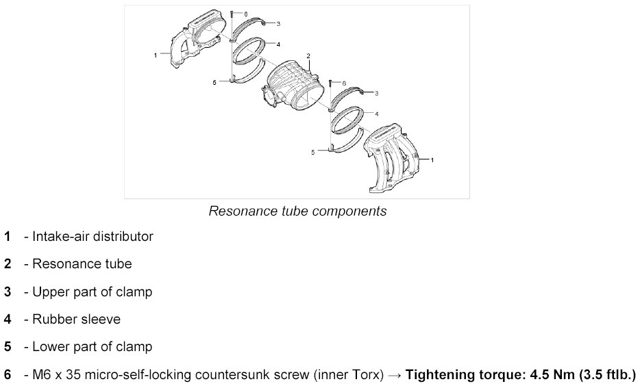 2.2. Position rubber sleeves on the upper side between the resonance tube and the intake-air distributor with the stop bead.