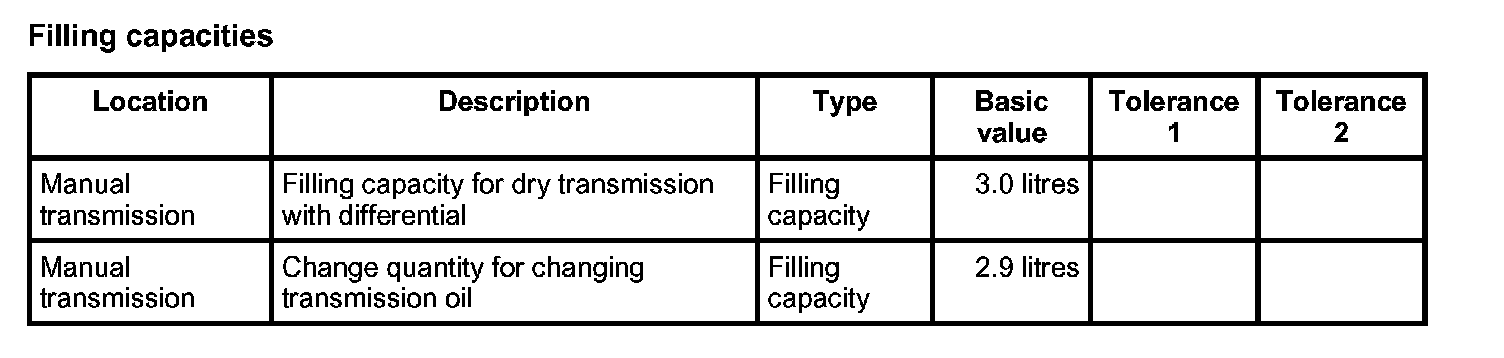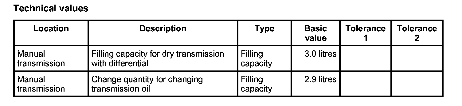 Technical data, transmission
