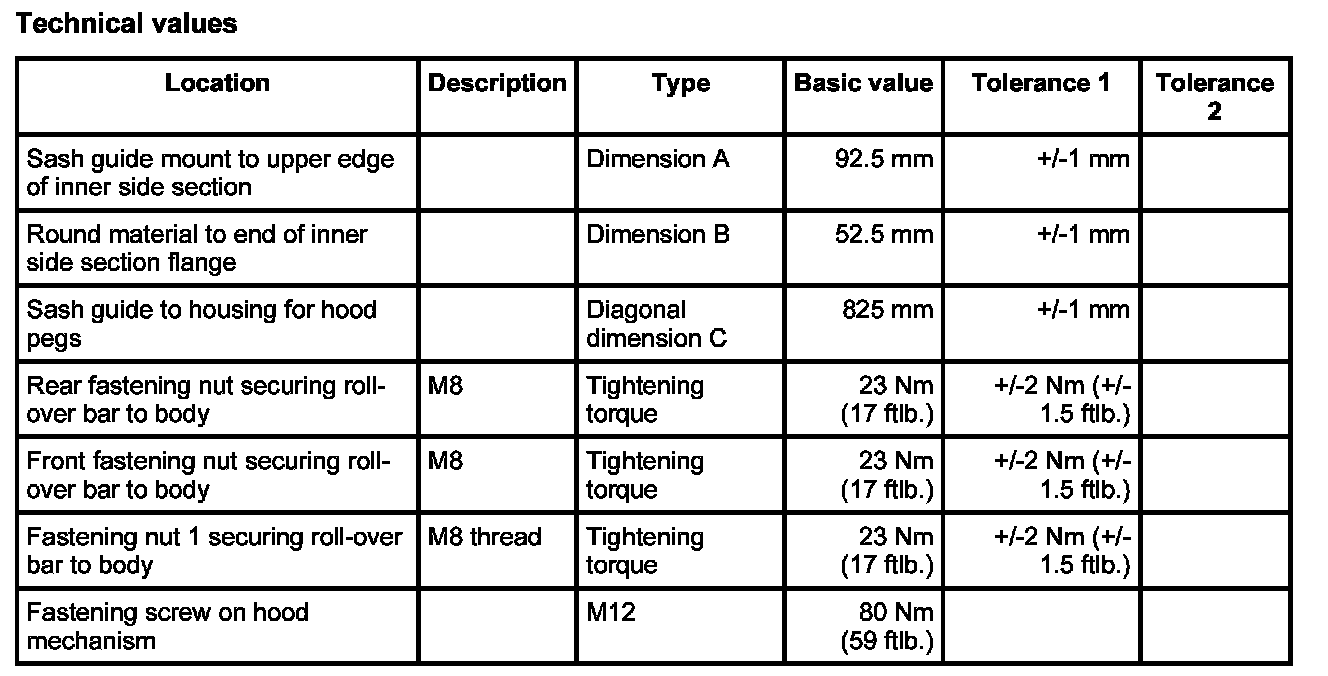 Refer to Removing and installing roll-over bar on "Technical values"