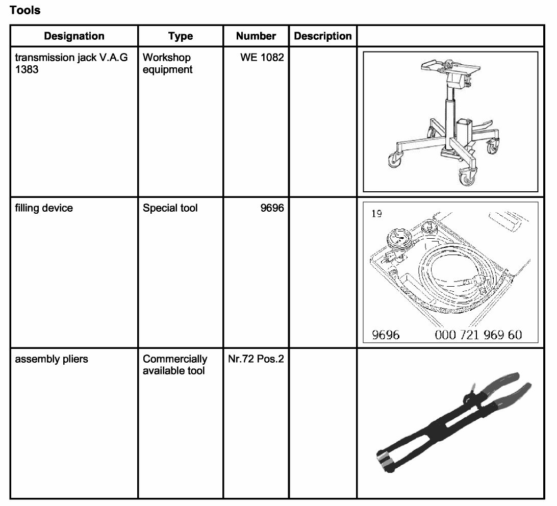 2.1. Secure the pan to the plate on the transmission jack V.A.G 1383 WE 1082 with a tension strap.