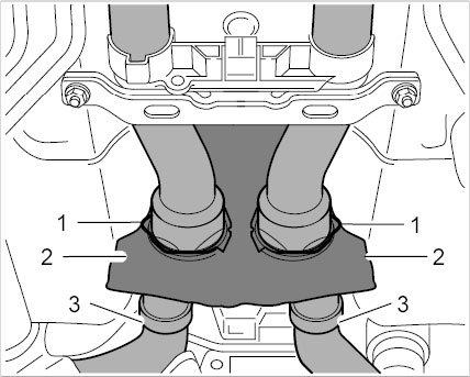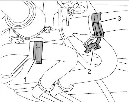 5.1. Open the spring band clamps -1 to 3- using an assembly pliers Nr.72 Pos.2 and pull off the hoses.