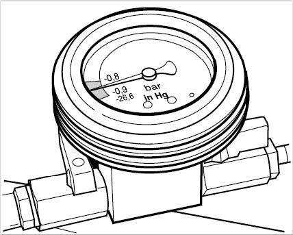 ^ When the pressure gauge pointer is in the green area of the display scale, a sufficient vacuum has been built up.
