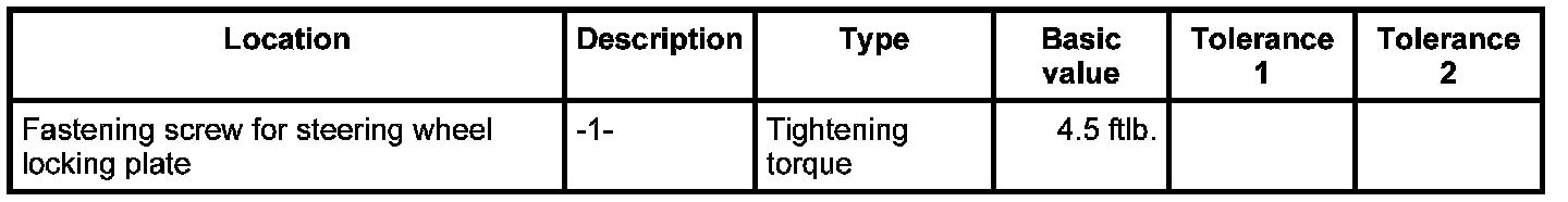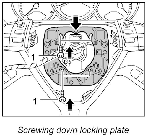 3. Position locking plate on steering wheel and screw down using the four fastening screws -1- and the washers. - Tightening torque: 4.5 ftlb.