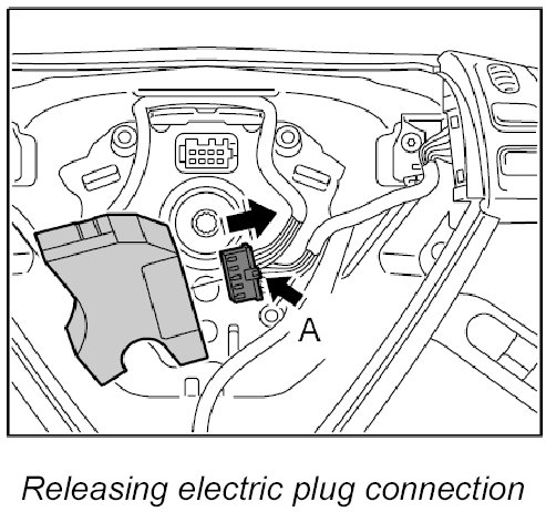 3. Release electric plug connection -A- and disconnect it from the multi-function control unit.