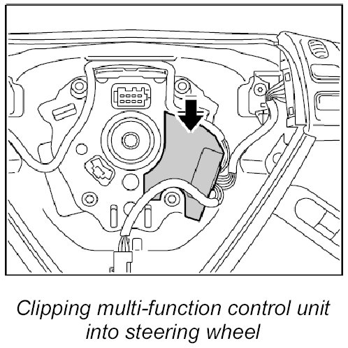 2. Clip multi-function control unit into steering wheel. Check that it is secure.