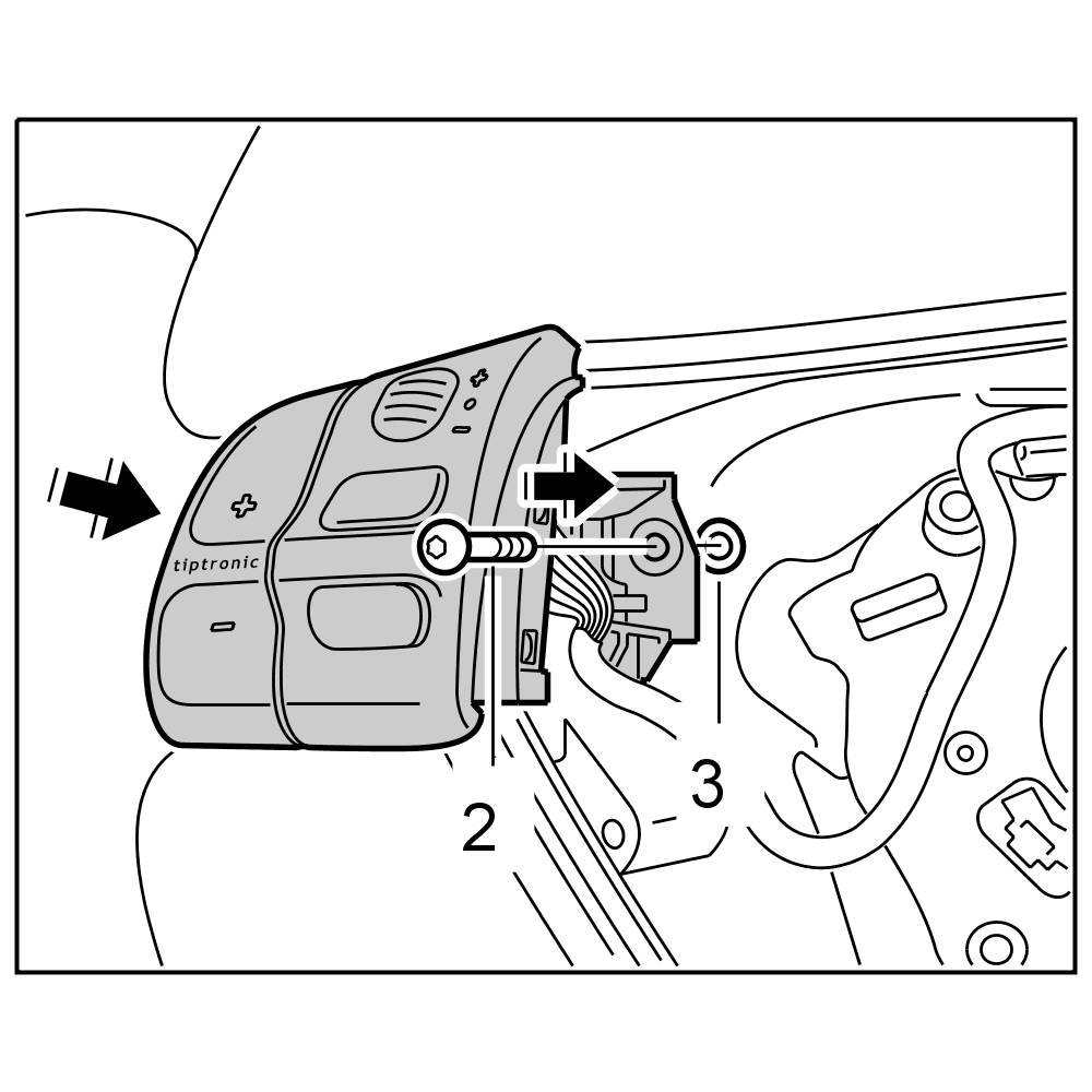 2. Insert remote control into the steering wheel, position washers -3- and screw down with the fastening screw -2-.