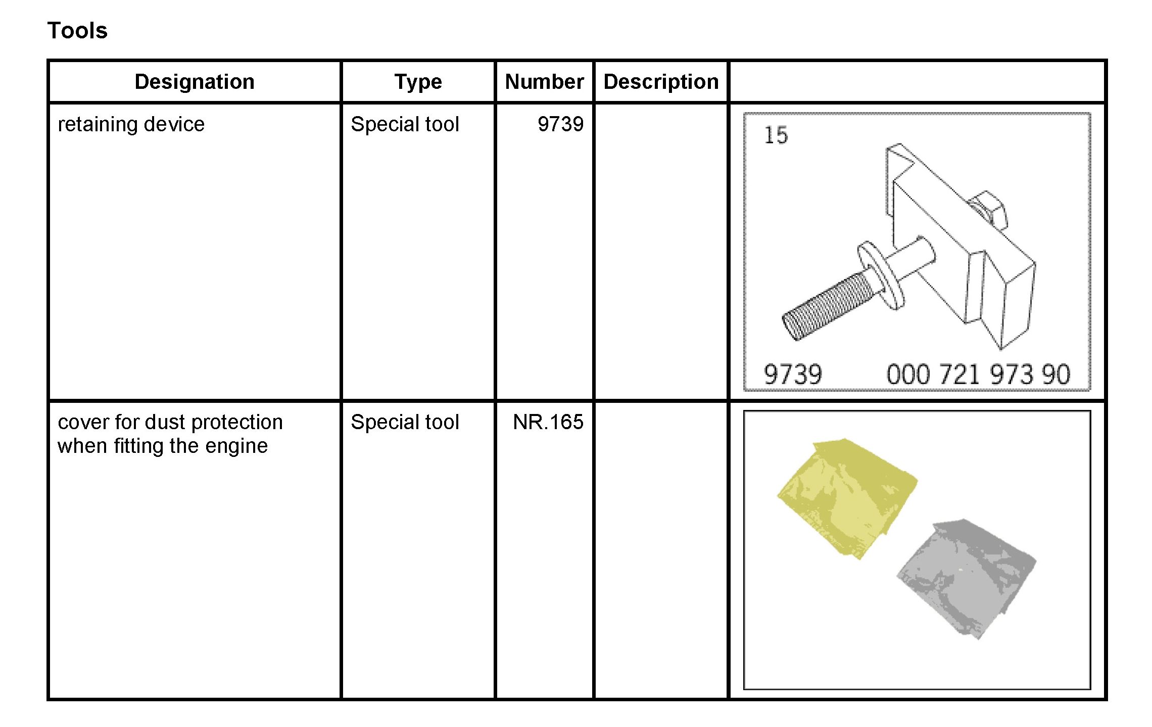 Special tool 9739 fitted