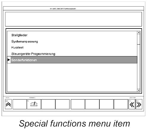 3. Find and select the Special functions menu item. Press F12>> to continue.