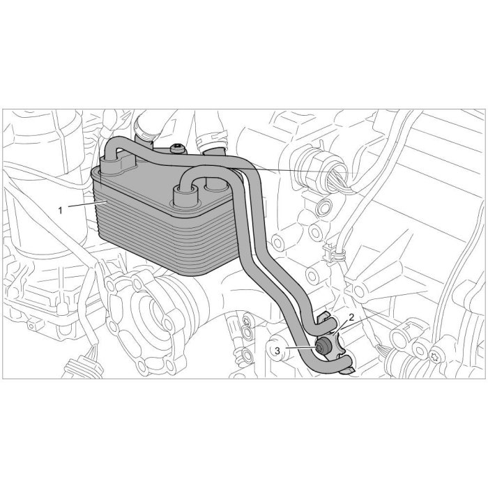 6.2. Disconnect coolant hoses -1- by releasing the spring band clamps -2- using a pair of angled spring band pliers -3- and pull off coolant hoses -1-.