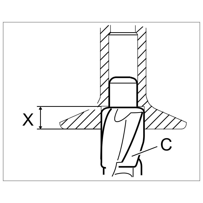 2.1. Mill out drill hole with spot facer -C- to dimension -X-. => Test and adjustment value: 10 mm Milling must only be performed using tool Spot facer for Time-Sert thread repair set NR.122-2 .
