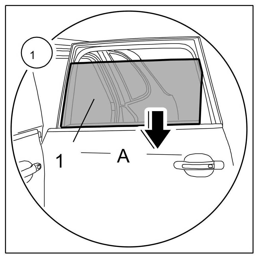 1.1. Open rear door window -1- as far as possible ( -Arrow A- ).