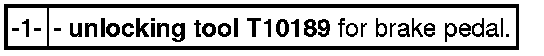 - Position the unlocking tool T10189 -1- so that the fork sits in correct position in the brake pedal mounting (in the inset, the fork in contact, view against the direction of travel).