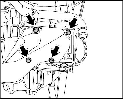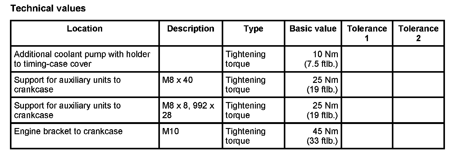 6. Re-fit auxiliary units and bracket for auxiliary units. Screw M8 x 40 -> Tightening torque: 25 Nm (19 ftlb.) screw M8 x 8, 992 x 28 -> Tightening torque: 25 Nm (19 ftlb.)