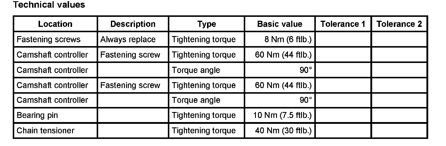 3.3.1. Then tighten the chain tensioner with a torque wrench. -> Tightening torque: 40 Nm (30 ftlb.).