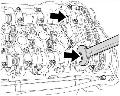 2.4.1. Counter the camshaft at the hexagon with an open-ended wrench.