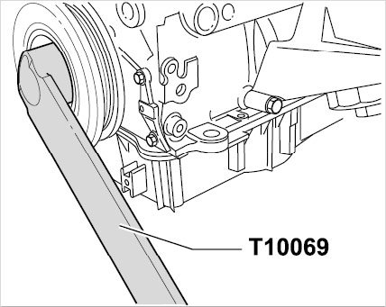 Block the crankshaft using special tool brace T10069.