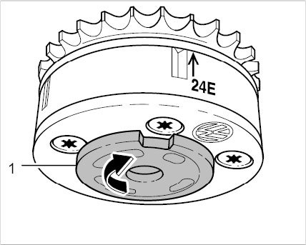 2.4. Turn the sensor wheel -1- on the intake camshaft controller -25- as far as it will go to the right.