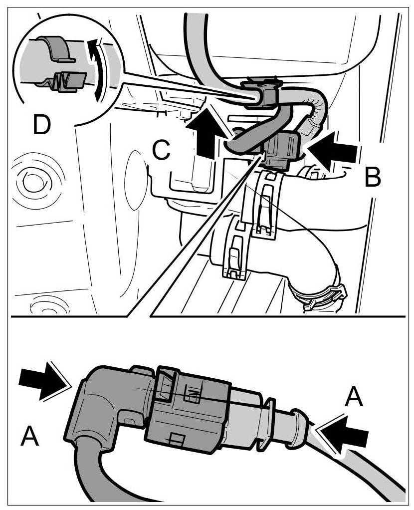 3.2. Push plug connection onto holder -arrow B-.