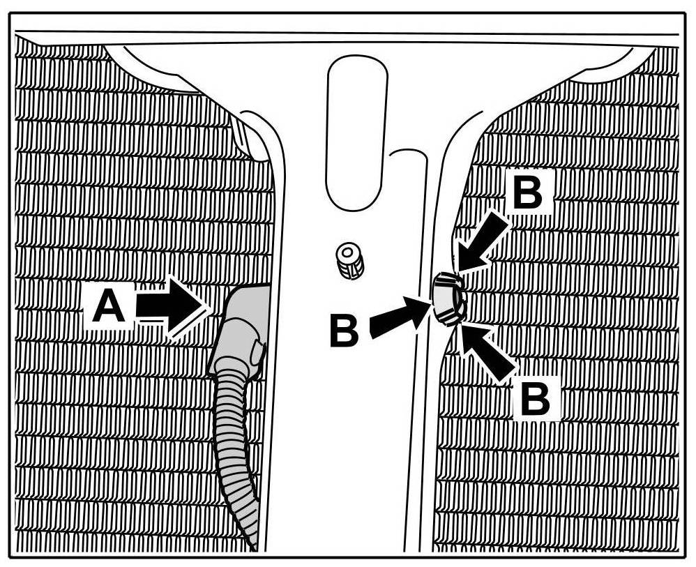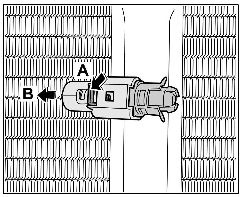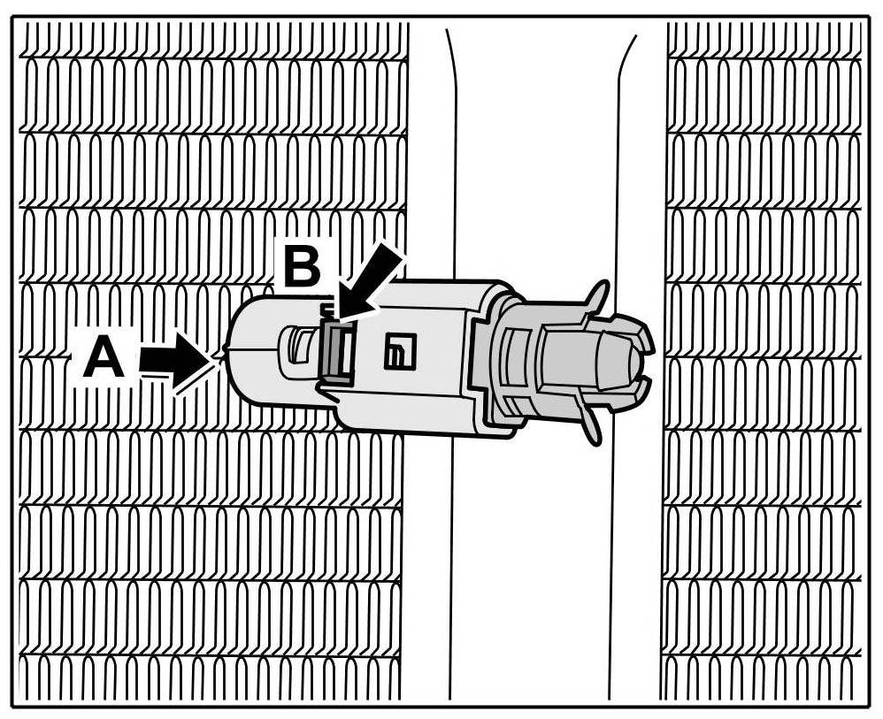 2. Push in temperature sensor -A- until you feel the locking tabs -Arrows B- engage.