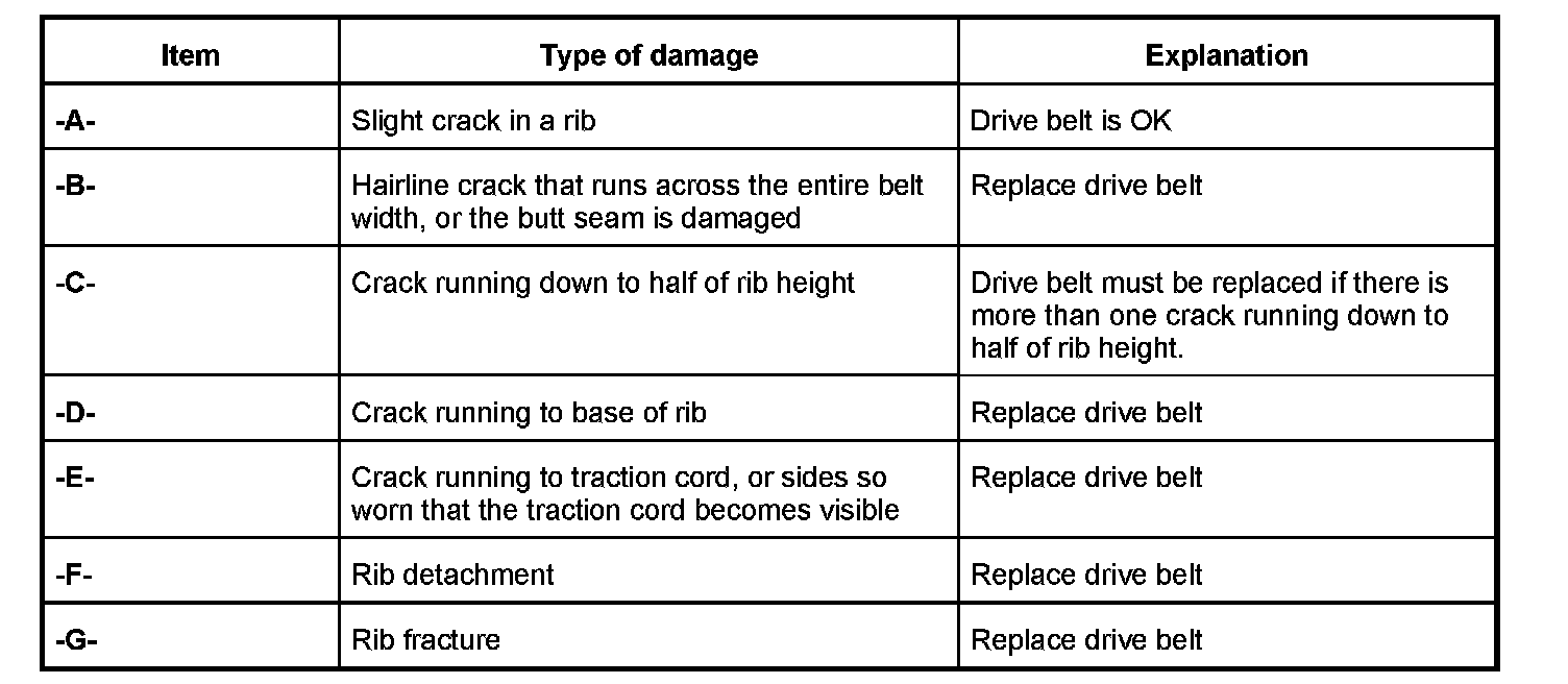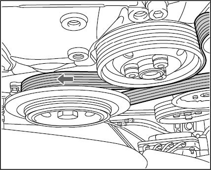 -> Following belt breakage, check adjacent components and the interior of the engine compartment for damage, and repair or replace damaged parts if necessary.