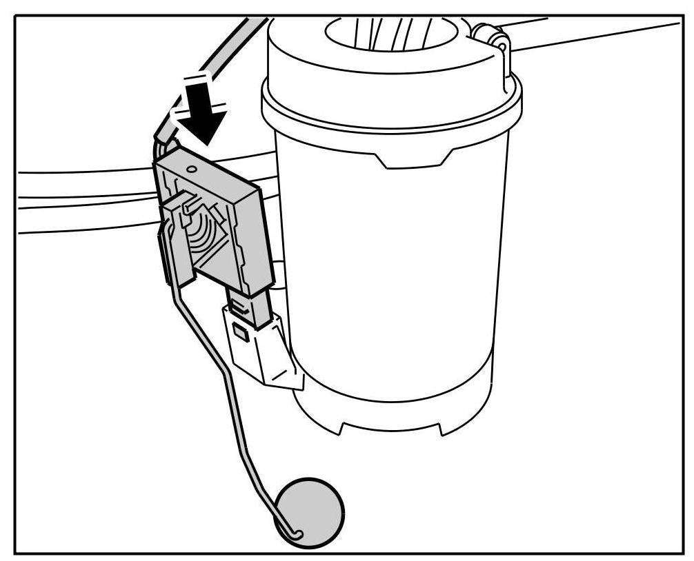 2. Press the retainer spring on the sensor by hand while at the same time pulling the sensor up. => Loosening fuel level sensor