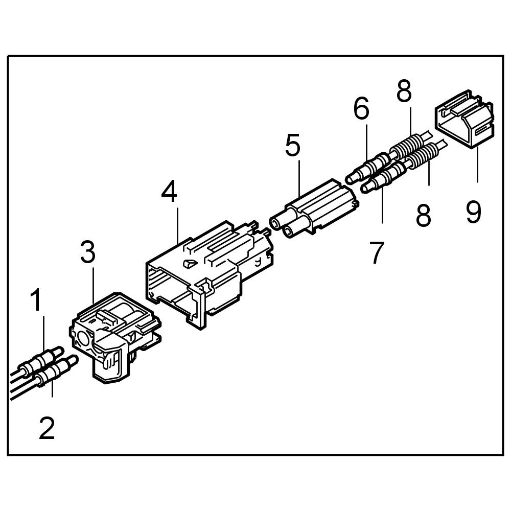 The LWL is delivered with affixed plastic contacts. These contacts are latched in the connector housing in the case of repairs. Grey and black contacts with identical mechanical dimensions are used.