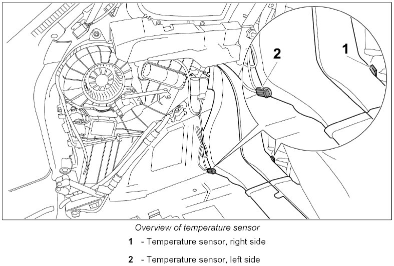 1. Turn the temperature sensor to the inside of the vehicle -arrow A- and remove it from the air duct -arrow B-.