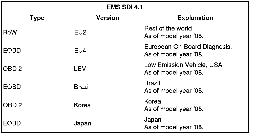 For the exhaust emission standard, the data record must be selected according to A, B and C markets for each specific country. => 0300IN Overview of A, B and C markets
