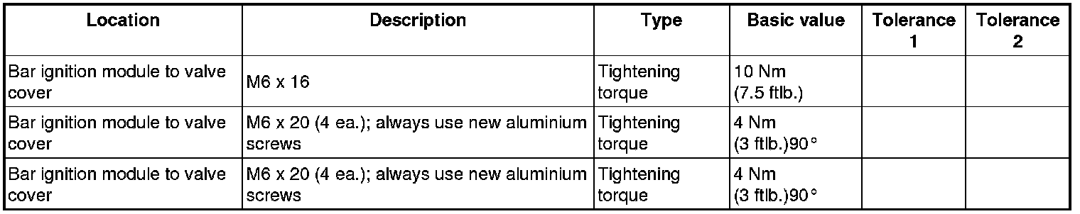 1. Fit screws on the bar ignition modules => Fastening screws on bar ignition modules. Fit cable plugs. => Cable plugs for bar ignition modules => Tightening torque: 10 Nm (7.5 ftlb.)