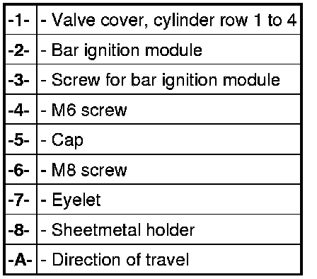 Bar ignition modules and valve cover, cylinder row 1 to 4