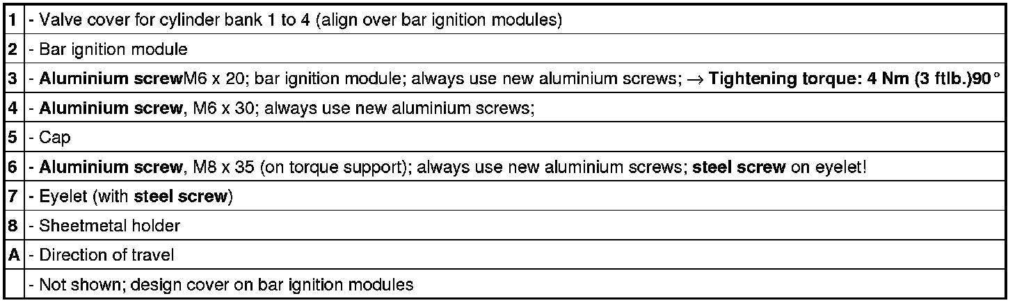 Bar ignition modules and valve cover, cylinder bank 1 to 4