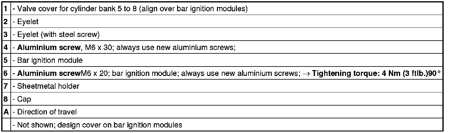 Bar ignition modules and valve cover, cylinder bank 5 to 8