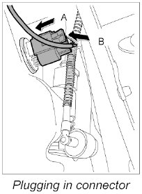 3. Connect plug to sensor -arrow A- until the lock -arrow B- is felt to engage.