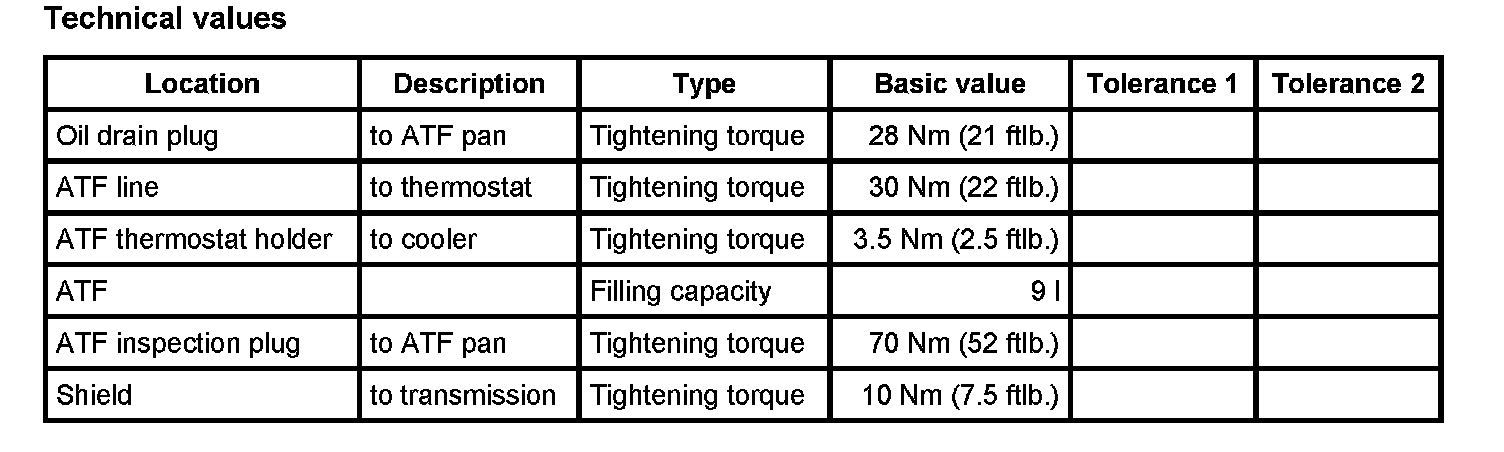 ^ Modified ATF filling capacities in the transmission in combination with new control units.