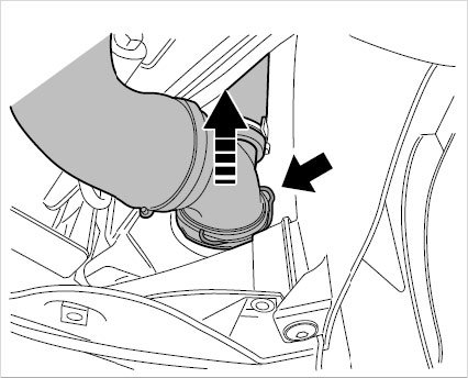 6. Disconnect intake pipe for the engine. To do this, remove locking clip -arrow- and pull off the line.