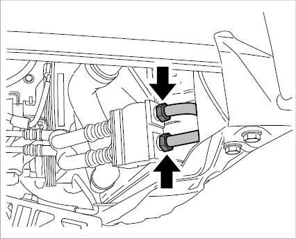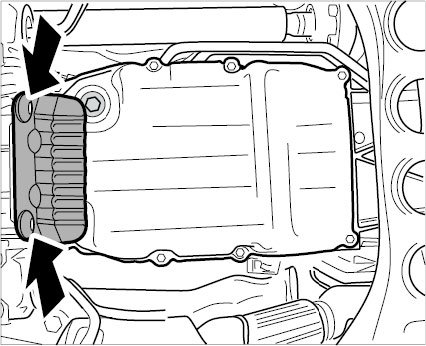 1. Remove cover of ATF pan. To do this, loosen the two fastening screws -arrows-.