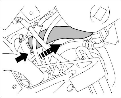 13. Fit intake pipe for engine. To do this, insert the locking clip -arrow- and push line on until it engages.