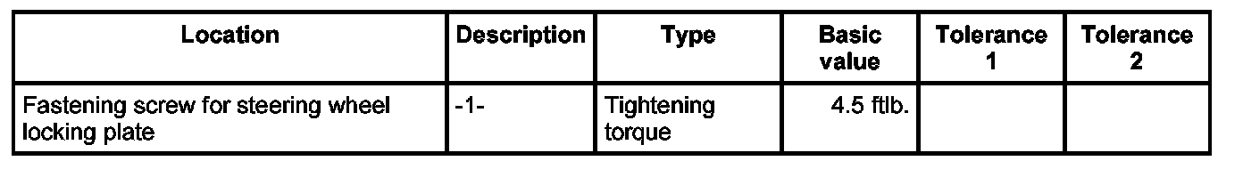 3. Position locking plate on steering wheel and screw down using the four fastening screws -1- and the washers. - Tightening torque: 4.5 ftlb.