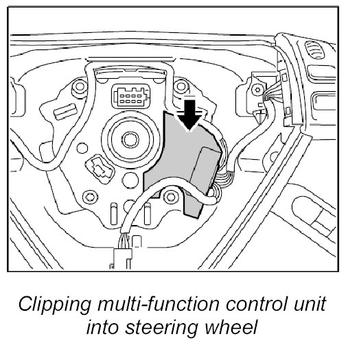 2. Clip multi-function control unit into steering wheel. Check that it is secure.