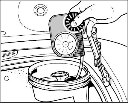 Cooling system tester WE 1069 connected to coolant system (symbolic representation)