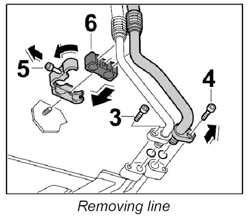 4. Remove line downwards from the engine area.