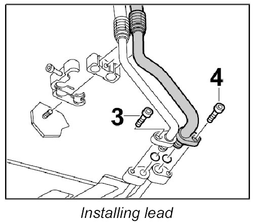 2. Insert line into evaporator line and secure using the fastening screw -3-. - Tightening torque: 14 Nm (10.5 ftlb.)