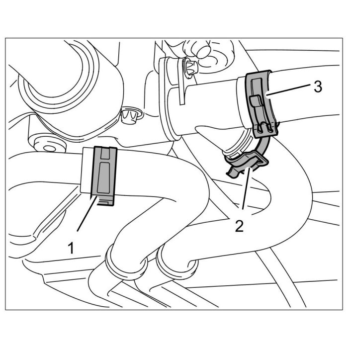 5.1. Open the spring band clamps -1 to 3- using an assembly pliers Nr.72 Pos.2 and pull off the hoses.
