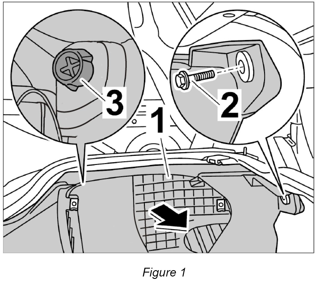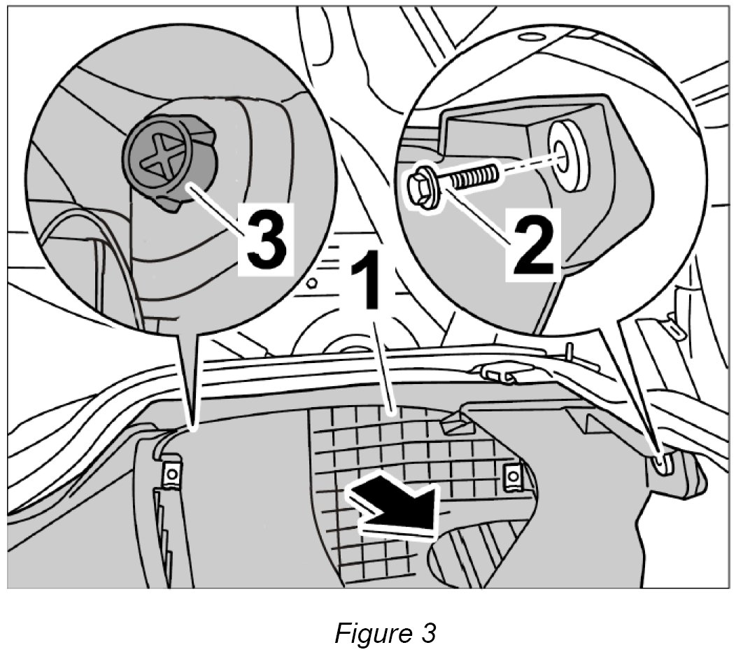 5. Replace the mounting grommet at the top left ( -item 3- ) with a new grommet.