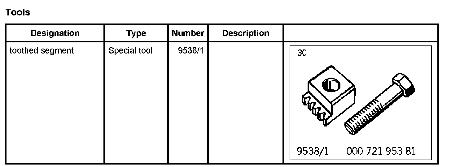 1. To counter, fit toothed segment 9538/1 to the crankcase using an M12 x 50 hexagon-head bolt (fine thread).