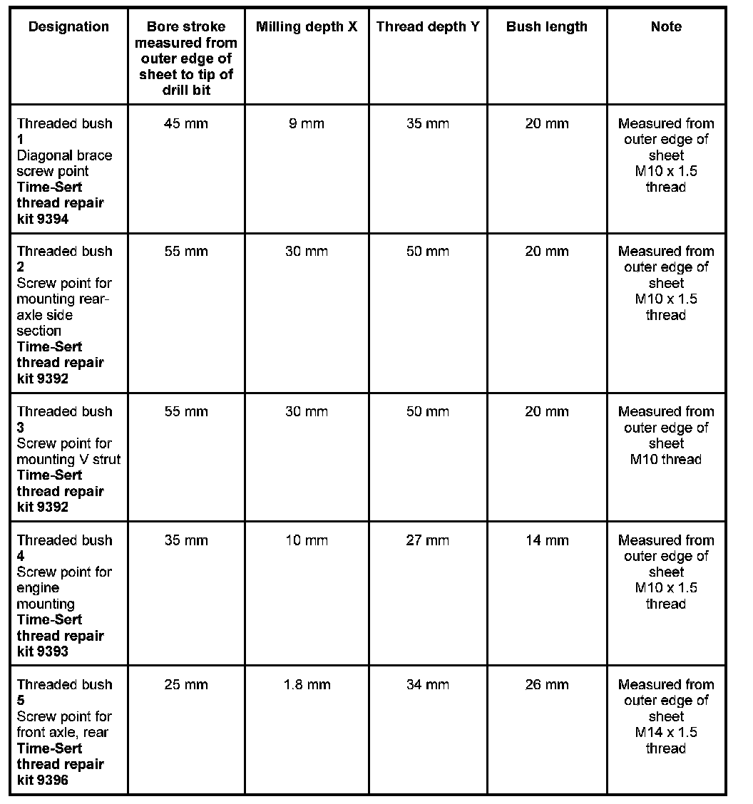 - The repair bush must be installed recessed. Milling in may only be performed using the Porsche special tool contained in the Time-Sert thread repair kit.